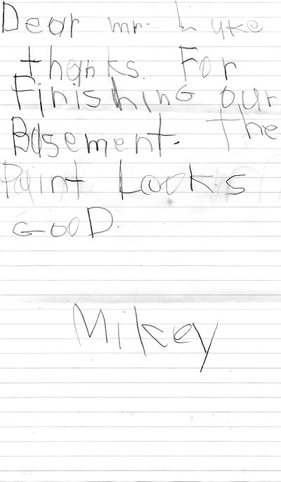 "Thank you for doing such an amazing job on my house. You made it all pretty painless and it's great you have so many competent people working with you. Thanks especially for doing all the odd job add-ons.”